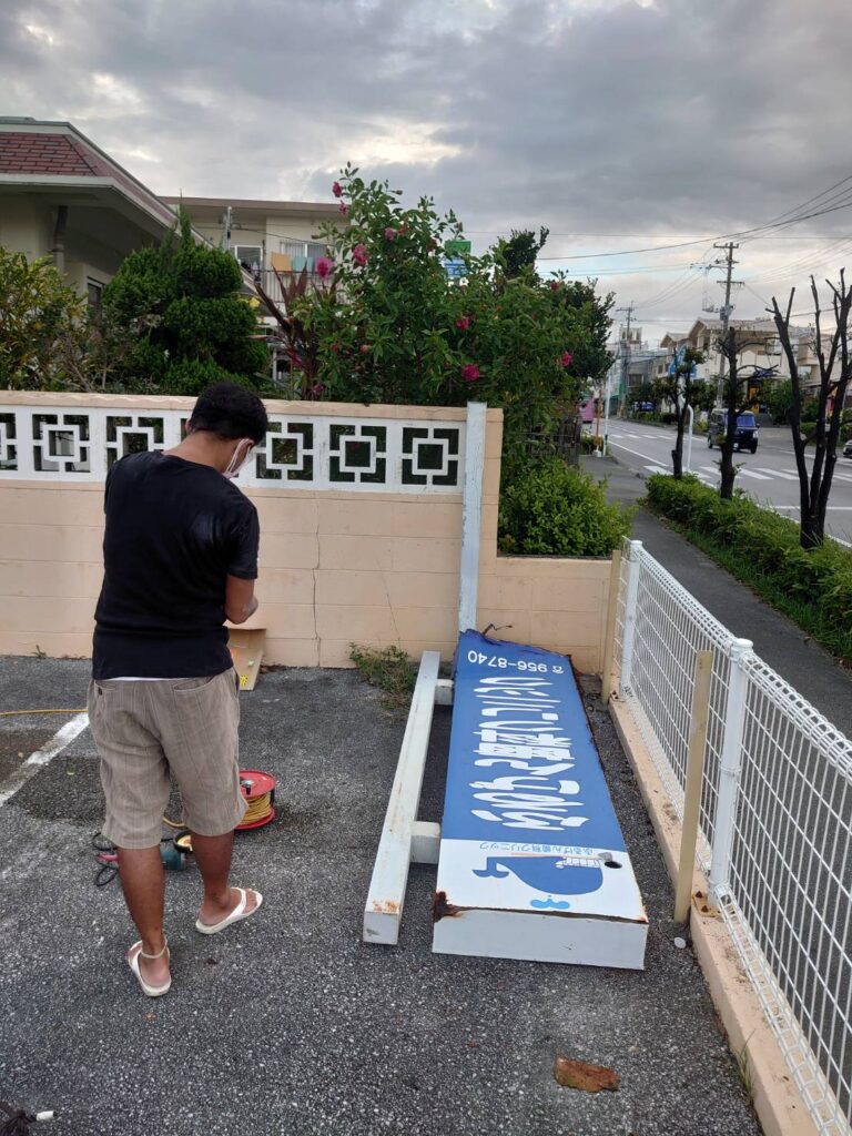 8/1(日)にふるげん歯科クリニックの古い看板の撤去作業を行いました。ここ読谷村に開院した当初から移転した後も、ずっとふるげん歯科クリニックを見守ってくれていた看板ですが、古くなりサビてきていたので撤去する事となりました。土屋先生、事務局の萩原さん、暑い中撤去作業お疲れ様でした。