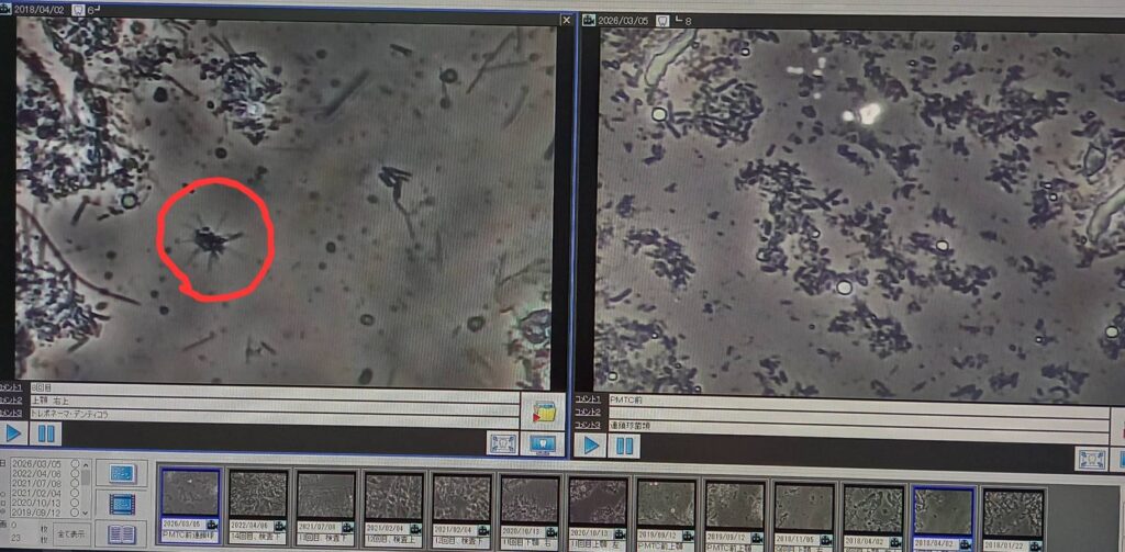 2026/03/10 ブログ 歯周病菌 お口の中のネバつき、口臭、出血はありませんか? このような症状がある場合、歯周病が進行している可能性が高いです。 当院では、位相差顕微鏡検査で菌のチェックを行い、一緒に確認する事ができます。 毎月通って頂いている患者さんも今では、歯周病菌がリセットされてゼロになりました。